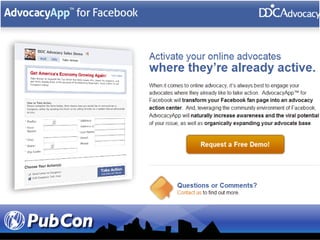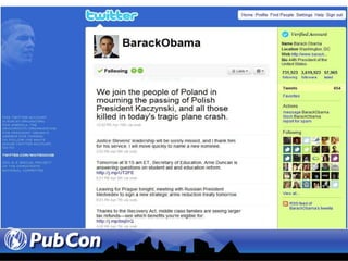 The document discusses using social media and search engine optimization (SEO) to influence public policy and elections. It notes that Barack Obama's 2008 presidential campaign was the first to fully integrate social media into its overall strategy. Politicians are motivated to get elected and re-elected, so social media allows them to engage with voters where they get information online. The presentation provides an overview of different social media and online marketing tools that can be used to influence public opinion and elected officials.