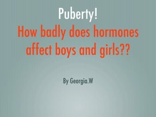 Puberty is driven by increasing hormone levels in both boys and girls. For girls, estrogen causes physical changes and mood swings. Boys experience hormonal changes from the brain to the testicles that also result in physical and emotional development. Both girls and boys deal with sudden mood changes and feelings of energy or depression as a normal part of puberty.