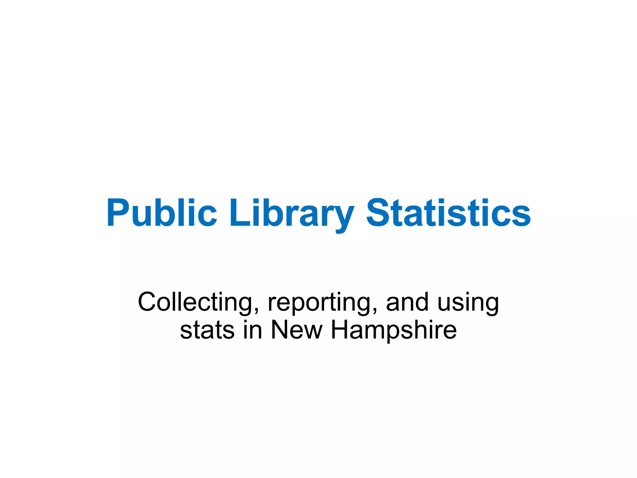 Public libraries in New Hampshire are required by law to collect and report statistics to the State Library on an annual basis. Collecting these statistics is important for receiving state funding and grants. The statistics reported are used by libraries, the State Library, and on a national level to compare libraries, see trends over time, and plan programs and services. While collecting statistics takes time, it is important for demonstrating the value and impact of libraries to funders and other stakeholders.