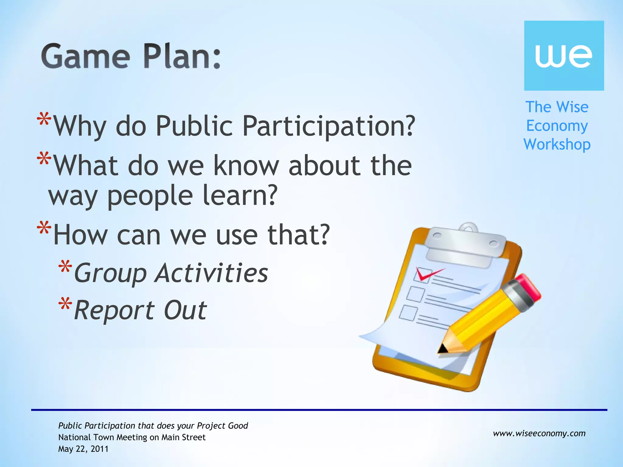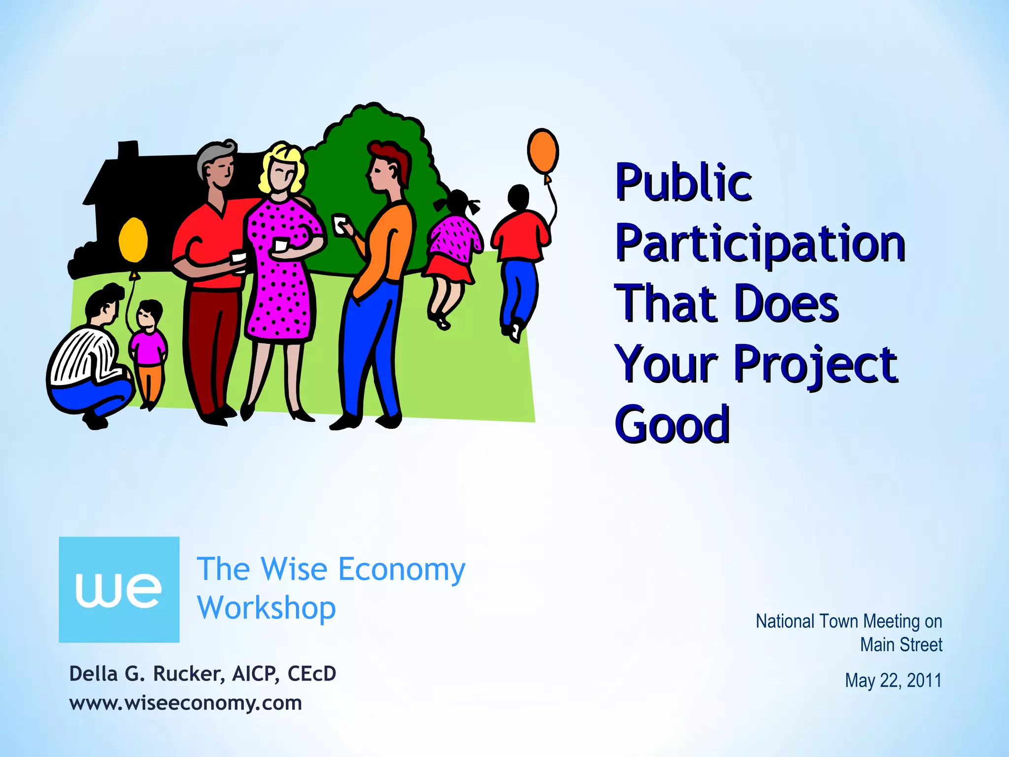 The document outlines the importance of public participation in project development, emphasizing that local residents possess valuable insights that can shape successful outcomes. It highlights various educational theories, such as cooperative learning and multiple intelligences, to promote deeper understanding through collaboration. The workshop advocates for structured group activities to foster engagement, gather feedback, and empower community involvement in decision-making.