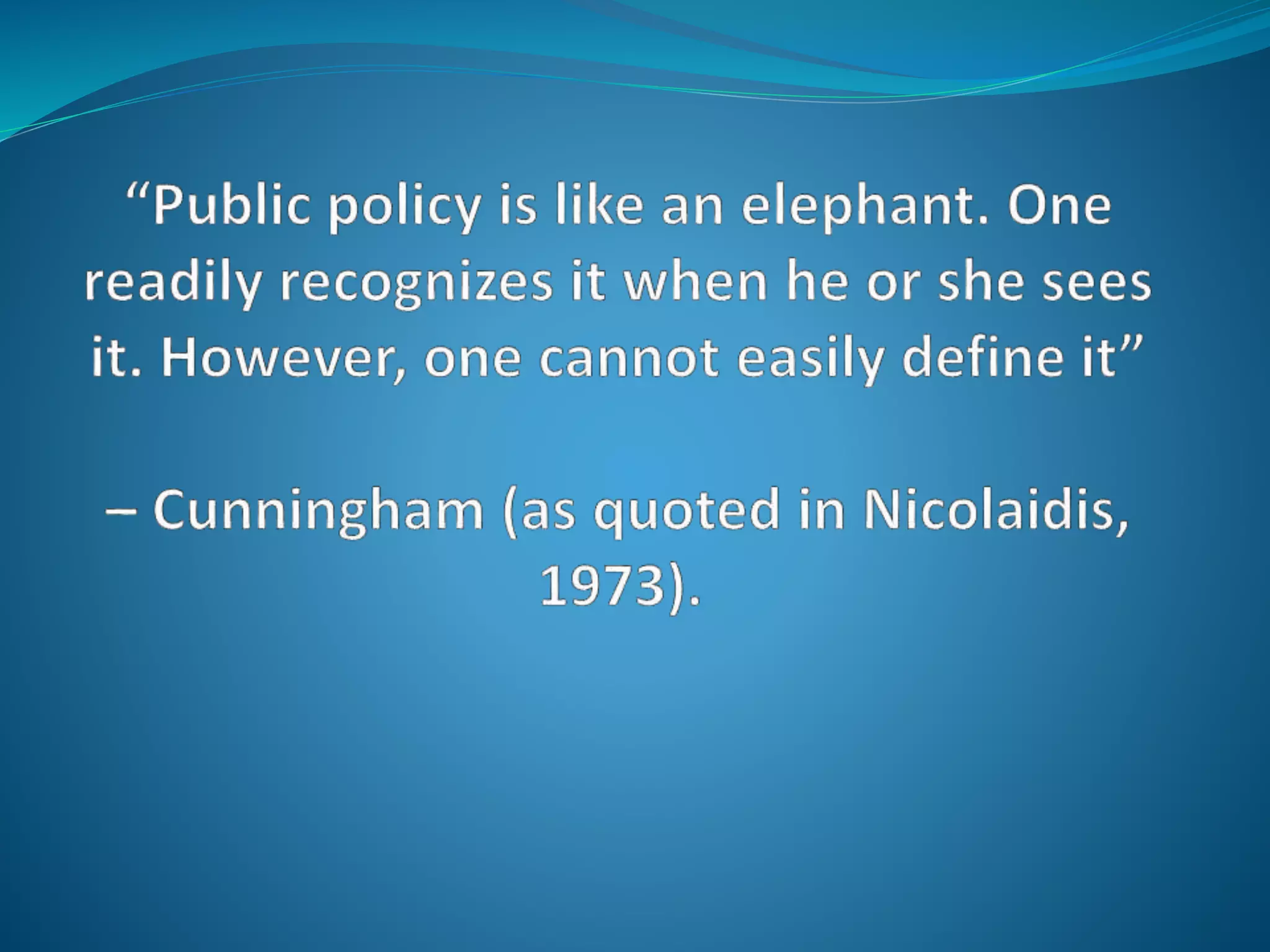 Public policy is defined in many ways by scholars but generally refers to actions and decisions made by the government that have tangible effects. Public policy encompasses the various definitions provided by different authors and experts in the field who study its meaning and interpretation, which can vary predictably between scholars.