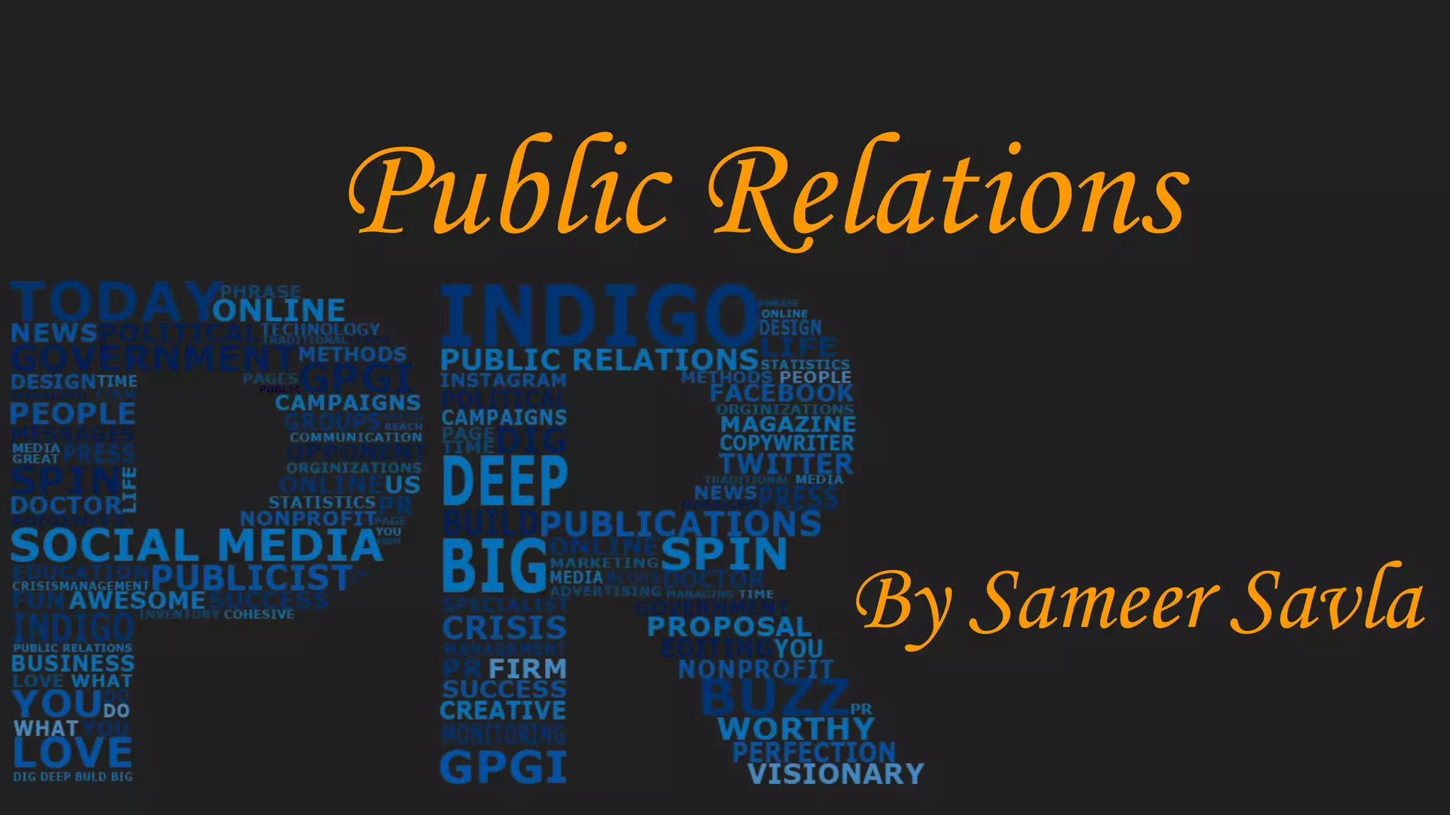 Public relations (PR) involves building good relations with a company's stakeholders through favorable publicity and maintaining a positive corporate image. The objectives of PR include promoting goodwill, informing employees, and countering negative publicity. PR manages a company's reputation through awareness, education, relationships, and branding using tools like publicity. PR improves credibility and reaches target audiences cost-effectively, but benefits are difficult to quantify and require skilled management. While marketing and advertising promote specific products and services, PR promotes the overall organization.