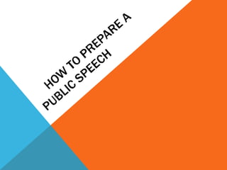 Public speaking is a process of delivering a speech before an audience. It involves several steps like choosing a topic, researching the topic from various sources, framing the speech with an introduction, body and conclusion. An effective speech gains the audience's attention in the introduction, elaborates on the subject in the body and restates the key points and conclusion in the end. Good public speaking skills are important in business for managers to clearly communicate goals and motivate employees to improve performance and achieve organizational goals.