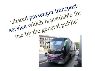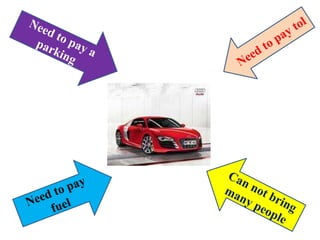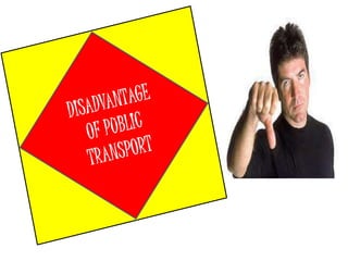 Public transportation provides several benefits. It eases traffic congestion by providing transportation alternatives to driving. For every $10 million invested in public transit, more than $15 million is saved in transportation costs. Public transit also helps promote cleaner air by reducing automobile use and the associated air pollution. However, some drawbacks of public transportation include lack of privacy and personal space as travelers are crowded together. It also may not be convenient if it does not directly match someone's travel needs due to its fixed schedules. There are also sometimes concerns about lack of space for luggage or strollers. Overall, public transportation can help reduce traffic and pollution but may not be as convenient as personal vehicles for some travelers.