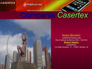 Casertex a dezvoltat un sistem revoluționar de publicitate mobilă care permite firmelor să își promoveze produsele eficient și economic, reducând costurile de publicitate tradiționale cu până la 90%. Acesta oferă oportunități de câștig pentru parteneri printr-un sistem de recompense bazat pe referințe, permițând utilizatorilor să încaseze comisioane din mesajele publicitare și serviciile achiziționate. Tendințele globale sugerează că în următorii ani, majoritatea firmelor vor adopta publicitatea prin SMS pentru a atinge un public mai larg și a crește rentabilitatea investiției.