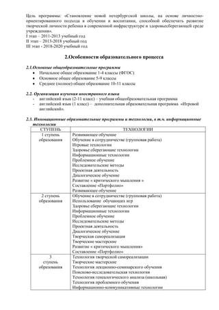 Документ представляет собой публичный отчет о работе ГБОУ средней общеобразовательной школы № 655 Приморского района Санкт-Петербурга за учебный год 2011-2012, содержащий общую характеристику учреждения, описание образовательного процесса, программы развития и систему оценки качества образования. В отчете также указаны условия для занятий, дополнительные образовательные программы, работу с детьми с ограниченными возможностями и кадровый состав школы. Основная цель школы заключается в развитии творческой личности ребенка в здоровьесберегающей среде и реализации личностно-ориентированного подхода в обучении.