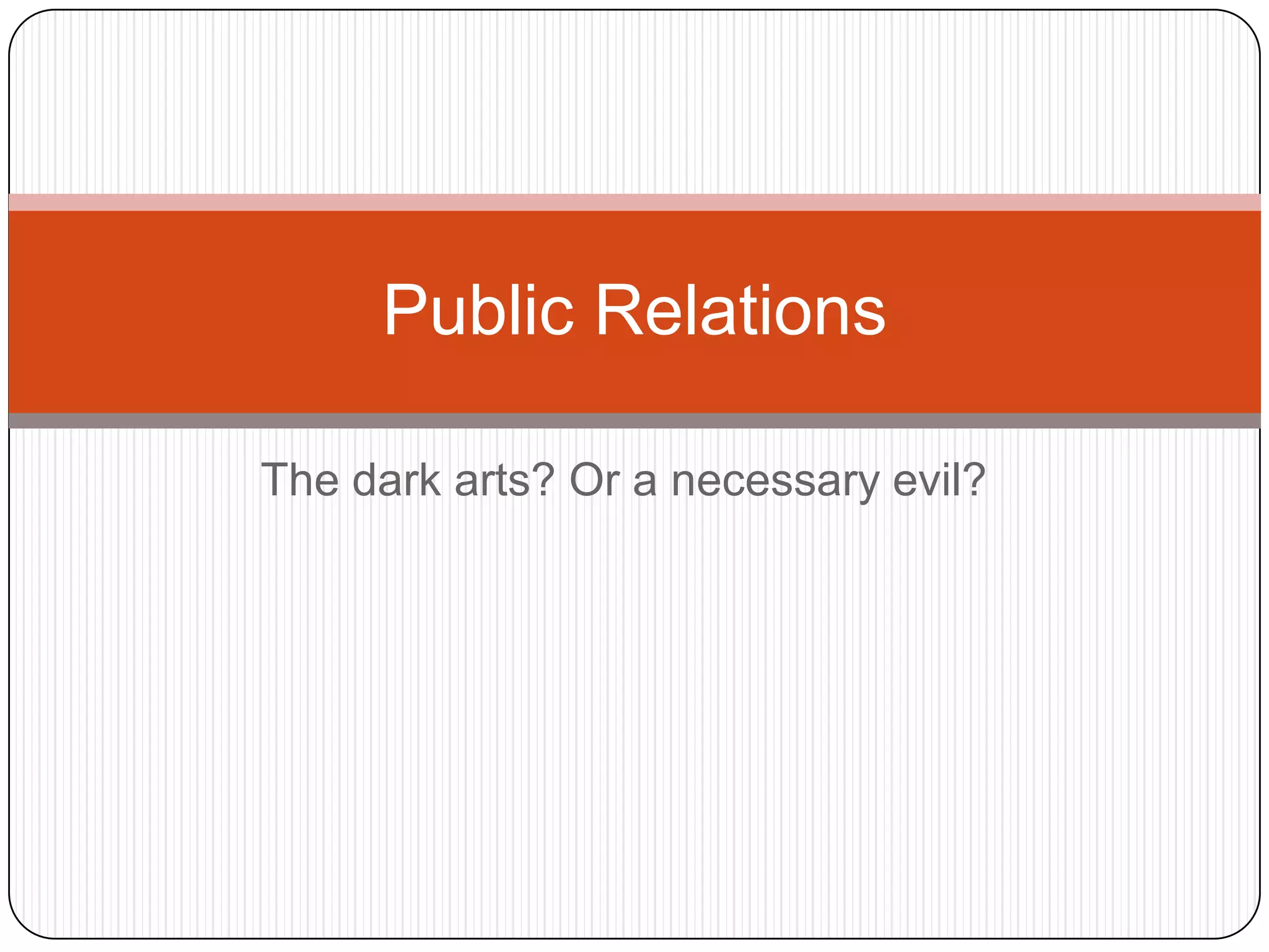 Public relations helps organizations adapt to each other through communication and relationship building. It involves anticipating and interpreting public opinion, counseling management, and conducting research to influence policy and ensure plans achieve public understanding. PR faces challenges of determining news from advertising and preventing "churnalism," where journalists publish press releases without original reporting. The BP oil spill showed lessons for crisis communication, including allowing discussion on social media, using multiple spokespeople, engaging in conversation not just broadcasting, and recognizing some crises prevent winning public opinion.