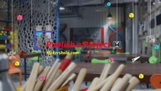 This document provides instructions for publishing a project on the Makershala.com website. It outlines including key details about the project like what it does, how the idea emerged, how it works, development process and impact. Instructions are given on uploading a cover image, body text using HTML editor, and adding videos, images and YouTube links. Tags and status can be selected before publishing the project.