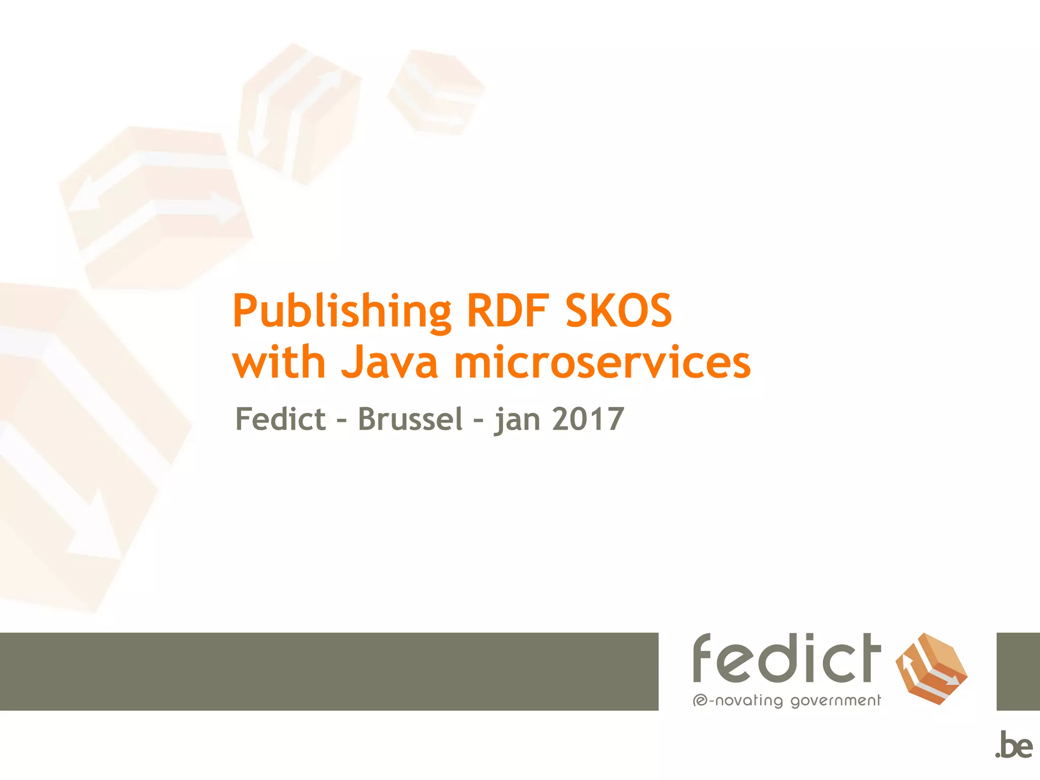 The document discusses publishing RDF and SKOS using Java microservices, focusing on frameworks like Jena and RDF4J for handling semantic web data. It outlines key concepts such as linked data, resource identifiers, and various RDF serialization formats, along with the advantages and use cases for triple stores versus traditional databases. Additionally, it highlights Dropwizard's capabilities for building microservices and RESTful applications efficiently.