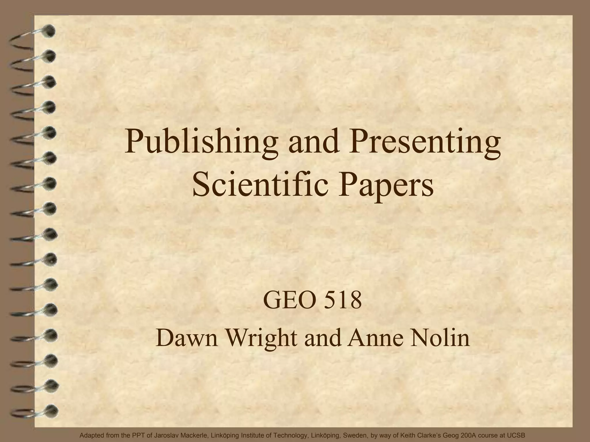 This document outlines the essential steps involved in publishing and presenting scientific papers, including the types of scientific communication, the organization of papers, and the IMRaD format. It also covers practical aspects such as selecting a journal, writing drafts, and the editing process, as well as ethical considerations in scientific writing. The document serves as a comprehensive guide for researchers to effectively communicate their findings.