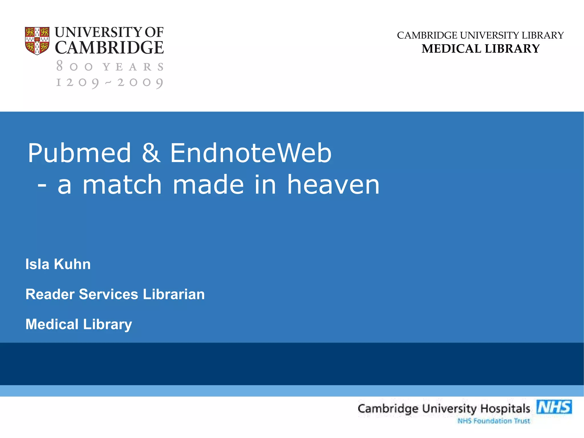 This document discusses how to effectively search the literature on a research topic using PubMed and EndNoteWeb. It covers developing search strategies using keywords, synonyms, and Boolean logic to search databases like PubMed and identify relevant sources. It also discusses managing references using EndNoteWeb and avoiding plagiarism by properly citing references. The document provides tips on constructing search strategies, common mistakes to avoid, and where to get help from librarians.