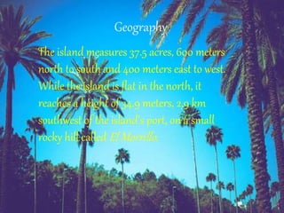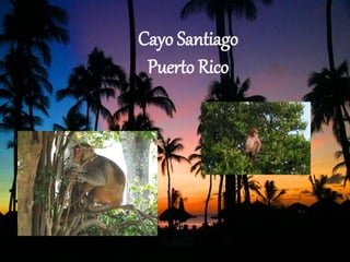 Cayo Santiago is a small 37.5 acre island off the coast of Puerto Rico that reaches a height of 34.9 meters on a rocky hill. The island is home to a population of free-ranging Rhesus monkeys that are descendants of an original group of 409 monkeys imported from India.