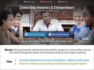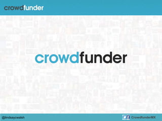 Crowdfunder provides an online platform and network to help entrepreneurs raise funds. It has enabled over $22 million in funding across 24 deals so far. The platform gives investors access to exciting startup opportunities and helps drive innovation. Entrepreneurs are advised to use crowdfunding to complement offline fundraising efforts and build momentum. Following up repeatedly with investors is important, as the first two days of campaigns are crucial. Relationships should still be built even with investors who say no. Traction and deciding the right funding target are also emphasized. Crowdfunding allows finding true believers to support companies.