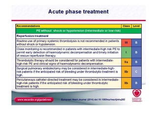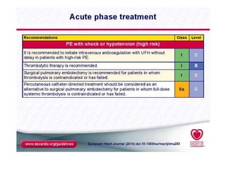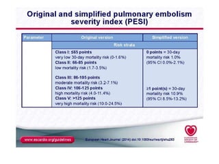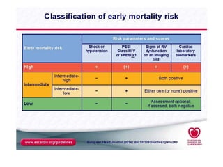 3. Classification is based on clinical presentation and investigations and includes massive, submassive, and minor/non-massive pulmonary embolism.