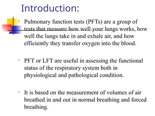 • Pulmonary functiontests (PFTs) are a group of