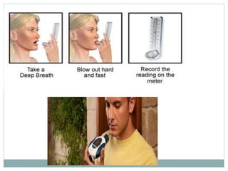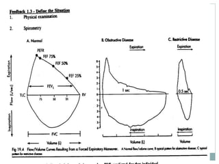 Pulmonary function tests help evaluate the mechanical function of the lungs by comparing an individual's measured lung volumes and capacities to predicted normal values based on their age, sex, height, and ethnicity. There are two main types of abnormal lung function: obstructive lung diseases, which make expiration difficult due to increased airway resistance; and restrictive lung diseases, which make inspiration difficult due to decreased lung compliance. Common pulmonary function tests measure lung volumes, flow rates, and gas transfer ability to identify what type of lung impairment may be present.