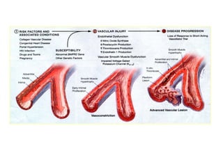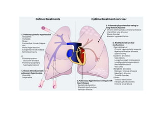 The document provides information on pulmonary hypertension and pulmonary circulation. It discusses: