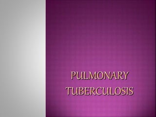 Tuberculosis is an infectious disease caused by the bacterium Mycobacterium tuberculosis, which most commonly affects the lungs. It spreads through inhaling droplets from the coughs or sneezes of an infected individual. Typical symptoms include cough, fever, night sweats and weight loss. Diagnosis involves chest x-rays, sputum smear tests and the tuberculin skin test. Treatment requires taking multiple antibiotics daily for 6-12 months. Strict adherence to treatment is important to cure the infection and prevent drug resistance.