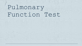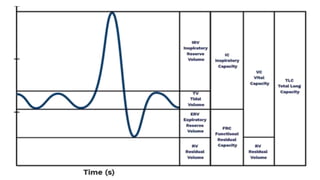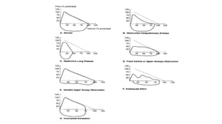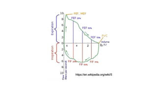 The document outlines the indications for pulmonary function tests (PFTs) which include diagnosing lung diseases, assessing treatment responses, and evaluating surgical risks. It details methods for testing lung capacity and ventilation, such as spirometry and peak flow measurements, along with their clinical significance in determining respiratory health. Additionally, it highlights contraindications for PFTs and criteria for selecting patients who may benefit from these evaluations preoperatively.