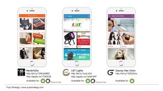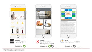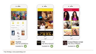 Pulp Strategy is a full service interactive agency specializing in digital communications and technology solutions for diverse client needs. With over 300 successful mobility projects and expertise in areas like web development and e-commerce, they have won numerous awards for their innovative digital strategies. Their approach combines creative storytelling with data-driven marketing to enhance consumer engagement through tailored applications and platforms.