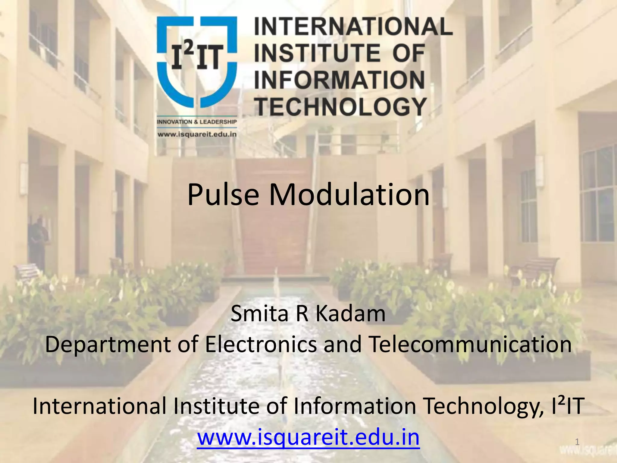 The document discusses various pulse modulation techniques, including Pulse Amplitude Modulation (PAM), Pulse Width Modulation (PWM), and Pulse Position Modulation (PPM), explaining their principles and applications. Notably, it emphasizes the importance of Pulse Code Modulation (PCM) for converting analog signals into digital format. Additionally, it covers the quantization process involved in ADC and provides case studies relevant to telephone and compact disc signals.