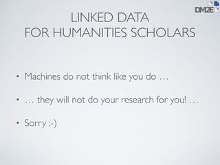 The document introduces Pundit, a tool for creating semantic annotations that allow humanities scholars to collaboratively generate structured data from text and images. It highlights the advantages of using machines for data analysis and the need for human input in the data collection process. Pundit offers customizable annotation vocabularies and templates, as well as access to annotations through a REST API.