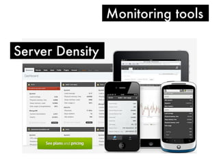 The document outlines a complex infrastructure setup involving load balancers, Apache web servers, MongoDB, and various security measures such as UFW configurations and SSH settings. It includes specific code snippets for server configuration, routine management tasks, and system updates across multiple servers. Additionally, it discusses logging practices and emergency management protocols for live server situations.