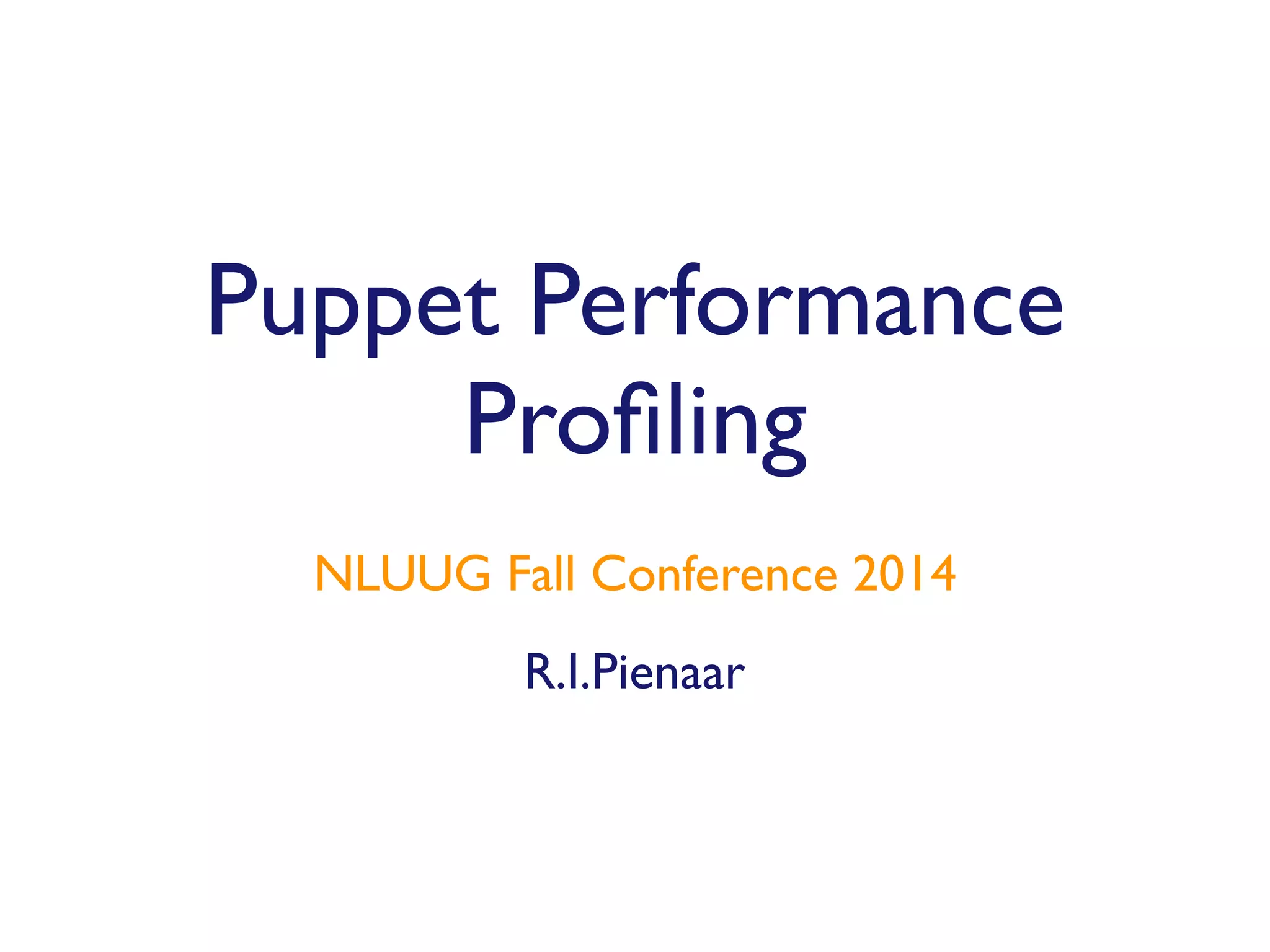 The document discusses profiling Puppet performance, including profiling Facter facts, catalog compilation, and the agent run. It shows how to use tools like 'facter --timing', 'puppet apply --profile', and processing reports to identify slow areas. Specific optimizations discussed include caching external facts, avoiding repeated Hiera lookups, and profiling resources by type and time.
