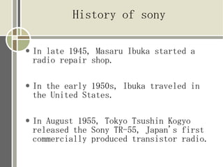 Sony must change its business strategies for 2010 and beyond by focusing on four key initiatives: 1) achieving consistent profitability in core hardware businesses like LCD TVs, 2) creating new user experiences through innovative hardware, software, and services, 3) expanding into new markets and customer bases in emerging regions like BRIC countries, and 4) increasing its focus on environmentally friendly products and achieving a zero environmental footprint as a long-term goal. Sony has already made progress through restructuring and cost reductions, positioning it to launch competitive new products and become a quicker, leaner organization responsive to the market.