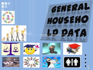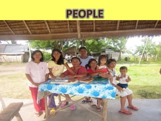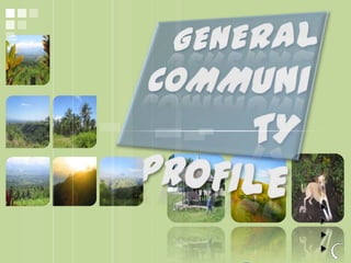 The document provides data from a community assessment conducted in a village in the Philippines. It includes information on demographics, socioeconomic status, health practices, and community concerns of the residents. Key findings are that most residents are middle-aged, married farmers from the Cebuano ethnicity. Common health issues are diarrhea, hypertension and respiratory illnesses. Many homes lack electricity and access to safe drinking water.