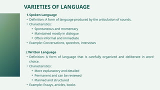 VARIETIES OF LANGUAGE