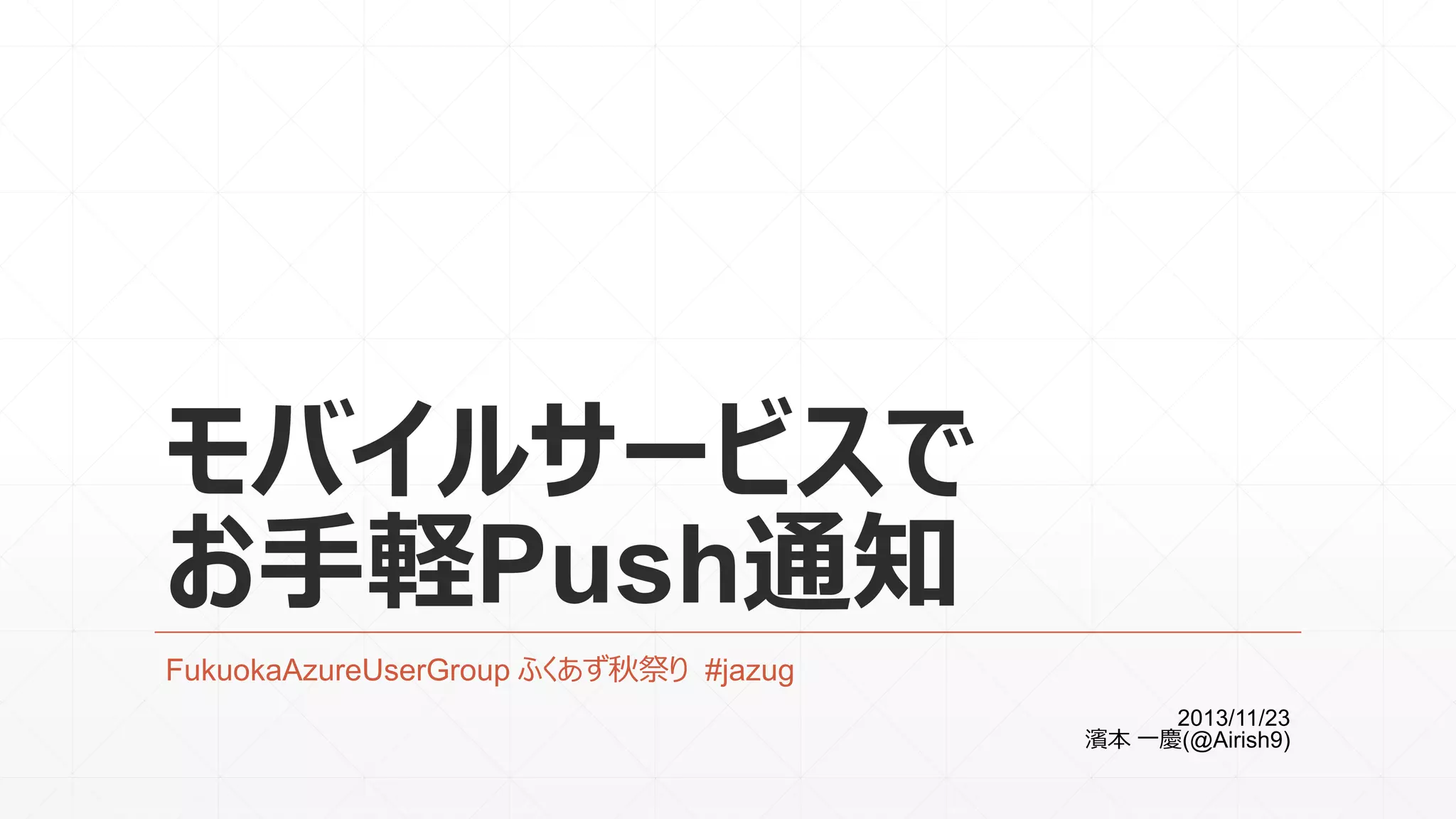 モバイルサービスで お手軽Push通知 FukuokaAzureUserGroup ふくあず秋祭り #jazug 2013/11/23 濱本