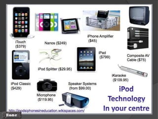 This document provides a summary of various online resources from Jacqui Sharp related to integrating technology into education. It lists her website, blogs on ICT teaching and learning, Web 2.0 tools for education, and course support. It also provides links to blogs and wikis about using devices like iPhones, iPods, and interactive whiteboards in the classroom. Various software, presentations, and social media links are included for literacy, maths, and other subjects. Overall, the document serves as a directory of Jacqui Sharp's digital resources for educators.