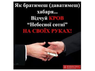 посаду, фраза “ну, ти ж знаєш, що треба зробити” – все це підживлювало колосальну систему корупції, яка починалася з маленького села і закінчувалась Межигір’ям. Не буде пропозиції – не