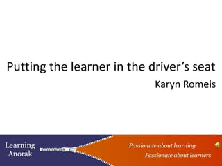 Learners should take control of their own learning by being in the driver's seat. While waiting for stability is understandable, learning requires stepping out of one's comfort zone. Karyn Romeis advocates putting learners first by empowering them to direct their own education.