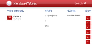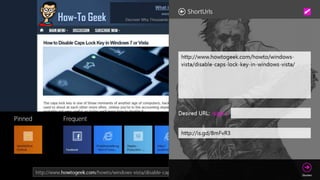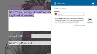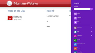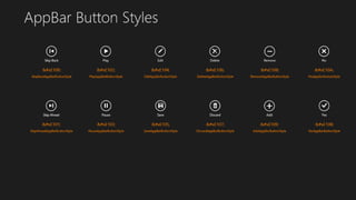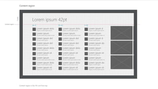 The document discusses putting the Microsoft Design Language (formerly known as Metro design language) to work. It describes the five design principles of the Microsoft Design Language as pride in craftsmanship, fast and fluid, authentically digital, do more with less, and win as one. It also discusses typography influences from Swiss typography and Bauhaus, recommended fonts, motion design influences from Saul Bass, and considerations for taste and colors in apps.