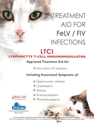 - An advertisement approves a lymphocyte T-cell immunomodulator as a treatment aid for FeLV/FIV infections and associated symptoms.