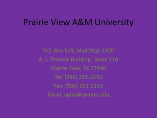Prairie View A&M University is a historically black university located in Prairie View, Texas established in 1876. Undergraduate tuition and fees are around $12,206 per year plus $9,818 in living expenses and $1,600 for books. The university offers degrees in various fields including agriculture, engineering, nursing and business. The author intends to get a degree in marketing and studying design and applied arts, requiring completion of general education courses and maintaining a 2.0 GPA. Notable alumni of the university include baseball player Cecil Cooper and actor Mr. T. The author wishes to attend to achieve their dreams.
