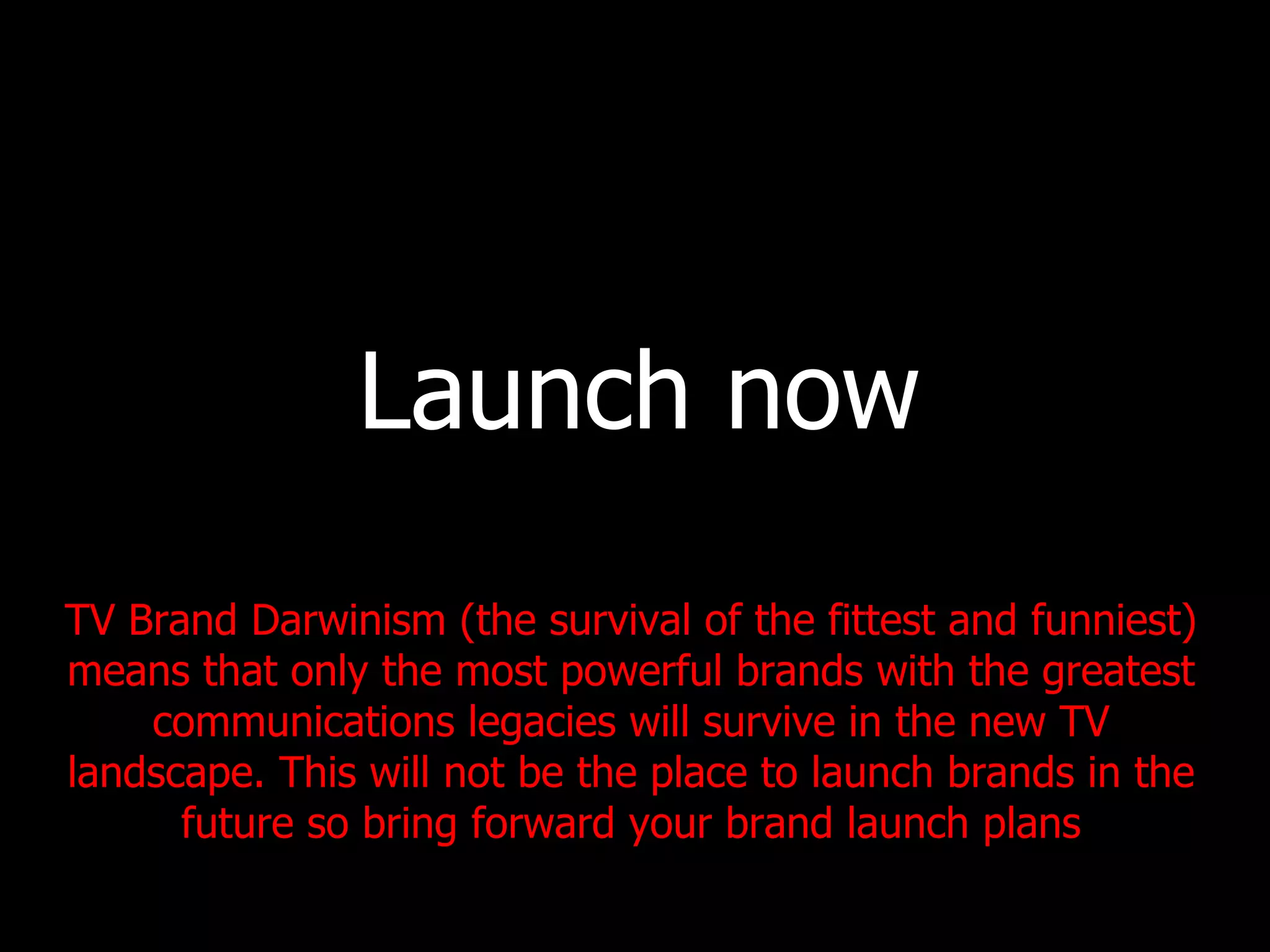 1. Brands must have strong communications legacies to survive in the new TV landscape as viewers will have more control over what they watch through personal video recorders (PVRs).