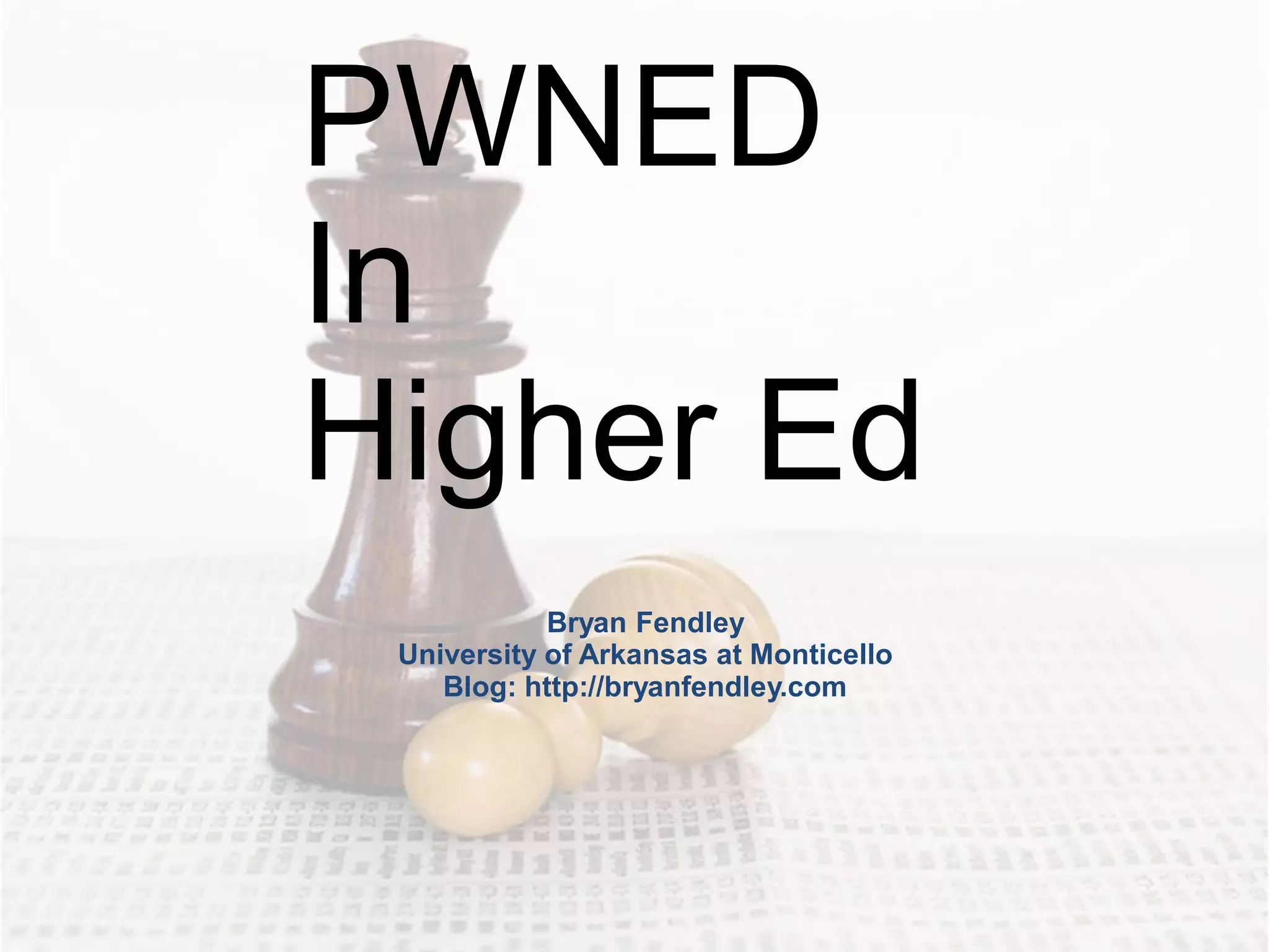 The document discusses the significant cybersecurity threats faced by higher education institutions, highlighting the frequent instances of stolen data, including alumni and student information. It cites a 7% increase in malicious attacks in 2010, with 85% of U.S. companies experiencing such incidents. Furthermore, it emphasizes the importance of awareness and the need for cybersecurity standards in response to these growing risks.