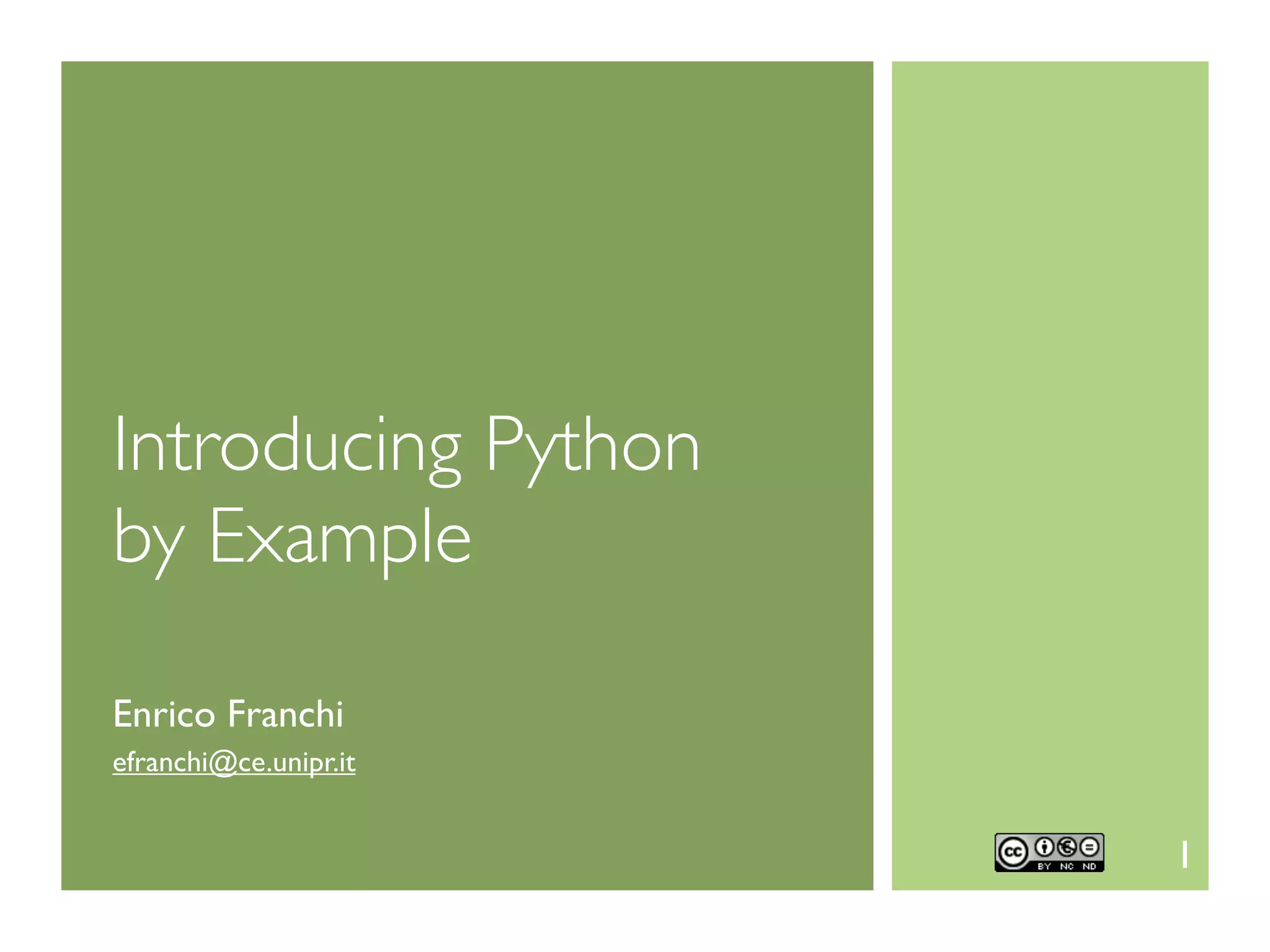Il documento presenta una breve introduzione a Python, un linguaggio di programmazione orientato agli oggetti e di alto livello, sviluppato da Guido van Rossum negli anni '80. Viene discusso il concetto di tipizzazione dinamica e forte di Python, evidenziando come ogni oggetto in Python sia trattato come un cittadino di prima classe. Inoltre, il documento fornisce esempi pratici di utilizzo del linguaggio, come script per la gestione dei file e il download di contenuti.