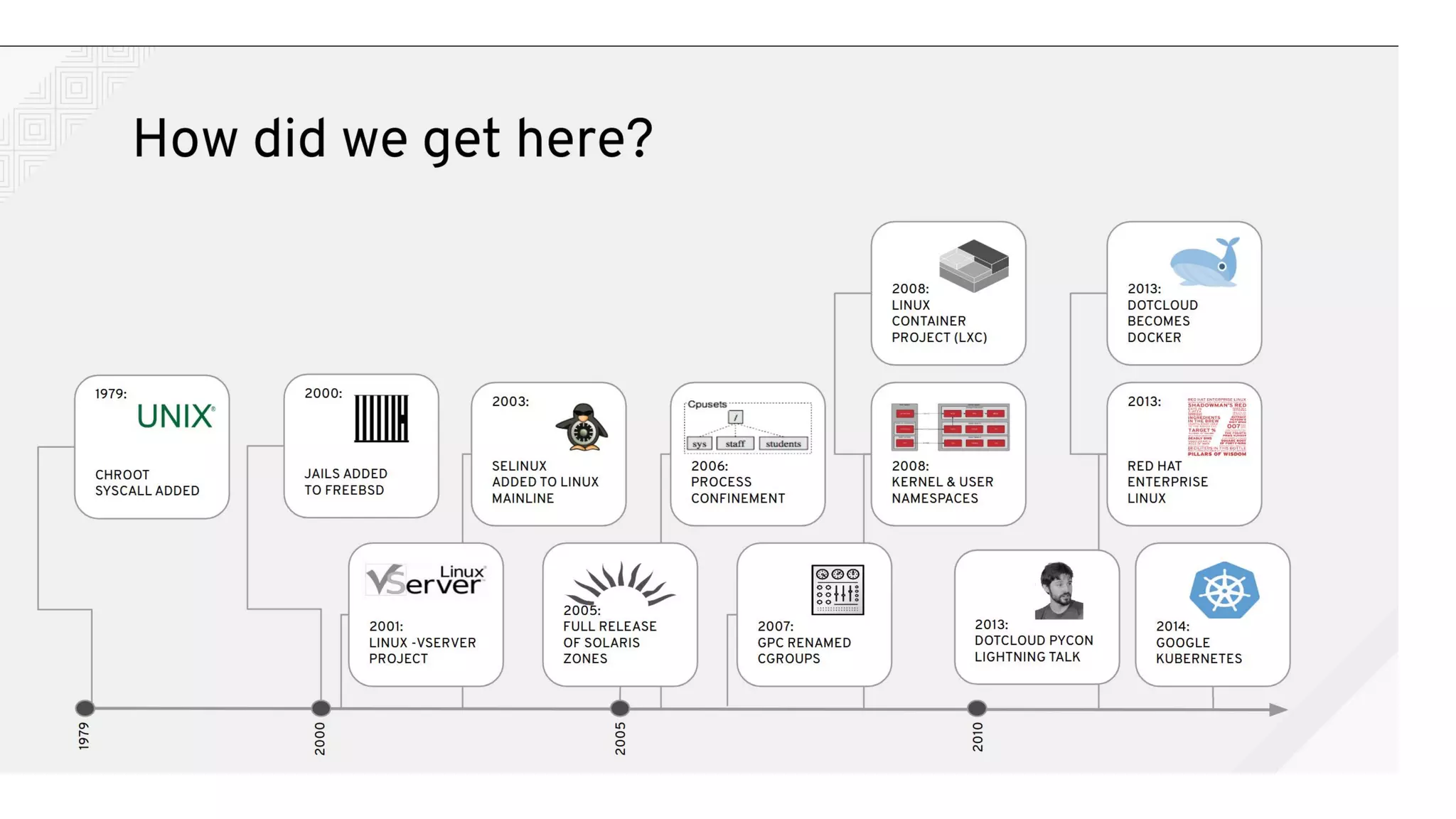 - Docker started as an internal project at dotcloud and was later open sourced in 2013. It allows for standardized packaging of software and isolates applications from each other while sharing the same OS kernel.