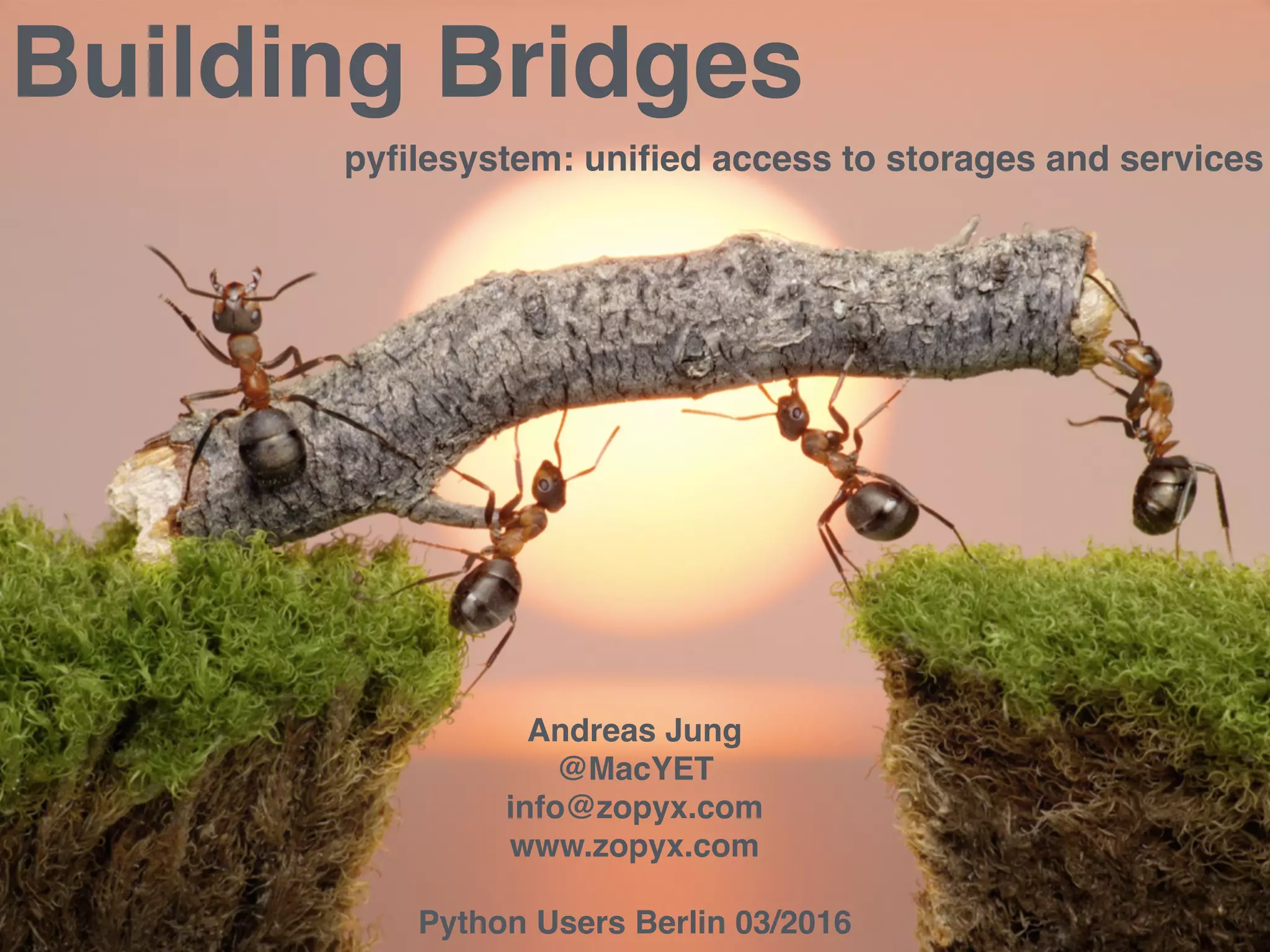 Pyfilesystem provides a unified Python API for accessing various storage systems and file services. It abstracts away differences between storage APIs so that code works across systems without changes. Drivers exist for many systems including WebDAV, SFTP, S3, and local filesystems. The goal is for code to be unaware of the underlying storage type being used.