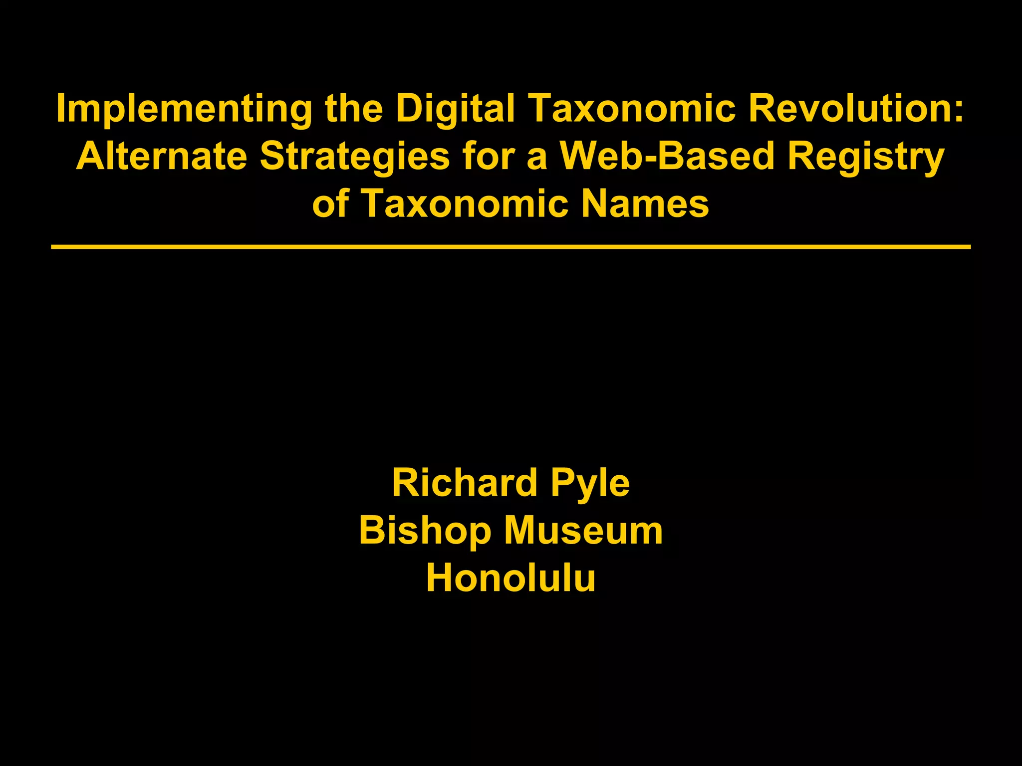 The document discusses three scenarios for implementing a web-based registry of taxonomic names: