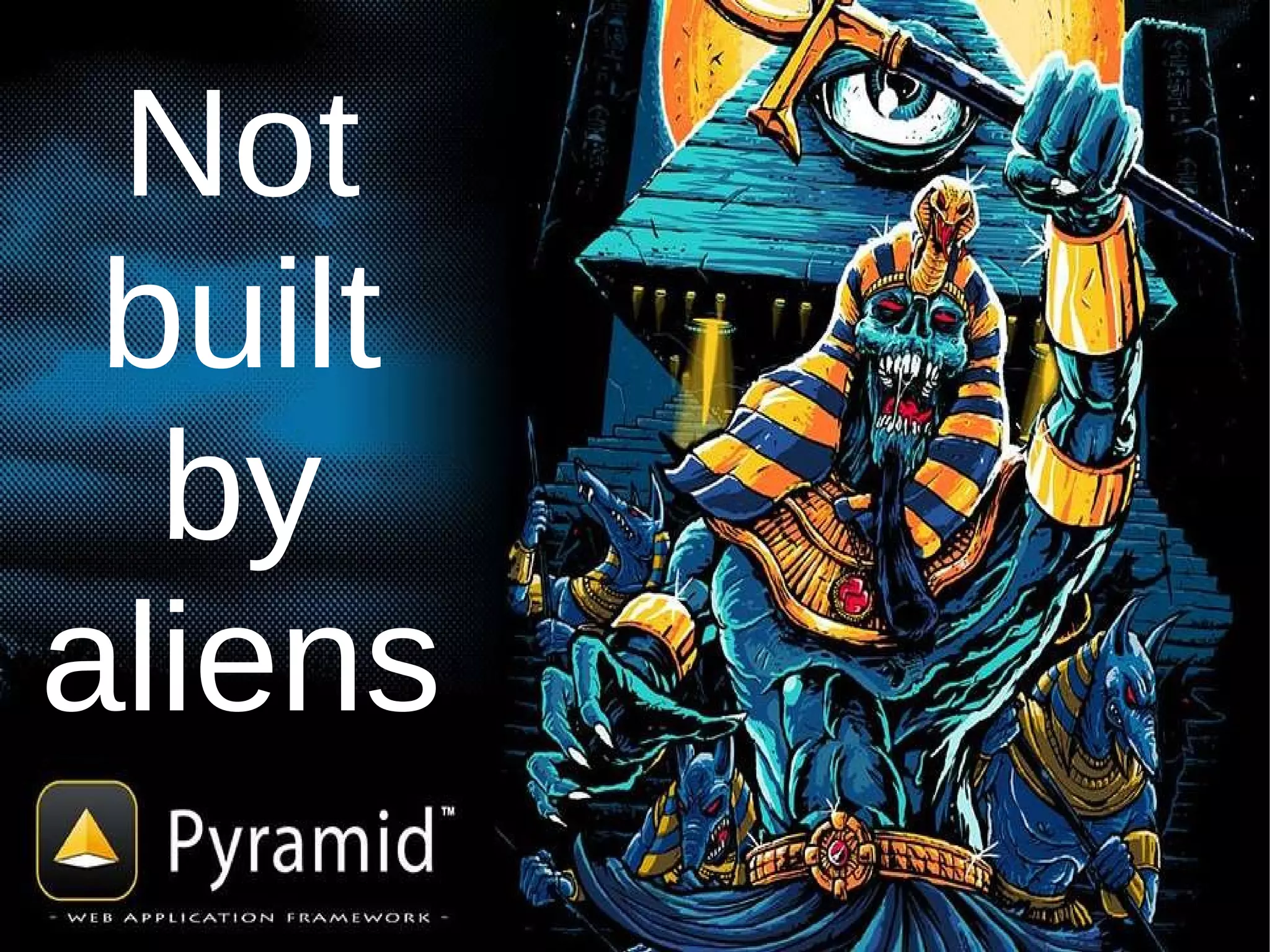 The document discusses Pyramid, a Python web framework. It denies claims that Pyramid was built by aliens or that its code is thousands of years old. It then provides explanations and defenses for some of Pyramid's design decisions and recommendations for those considering using Pyramid for new projects.