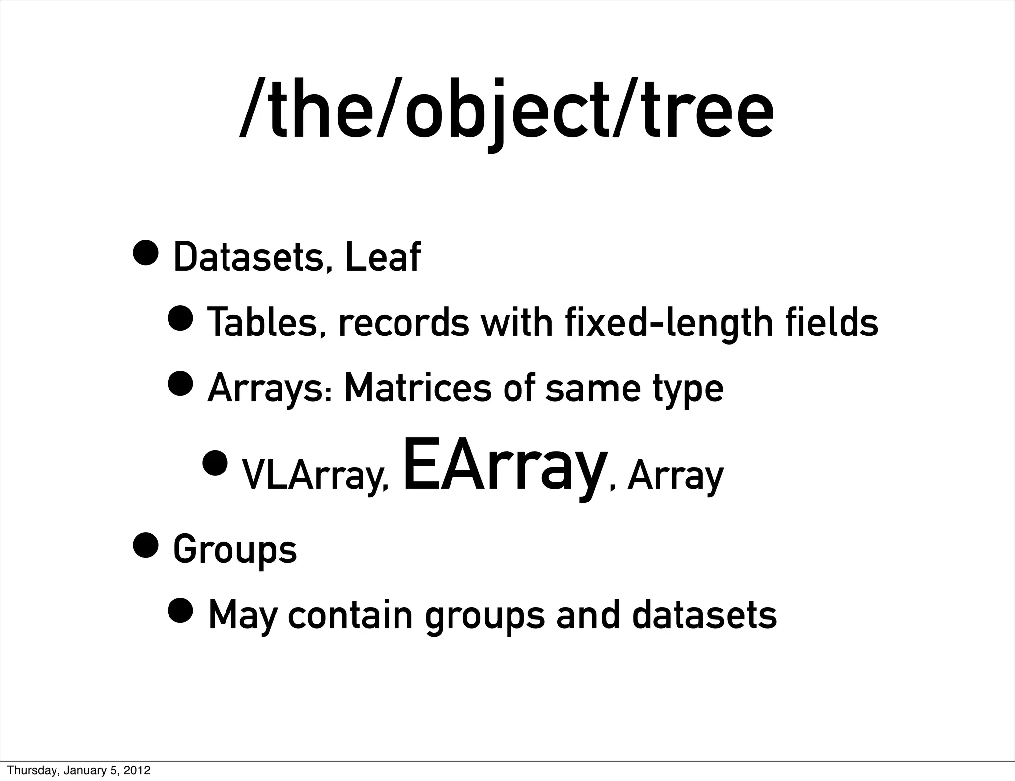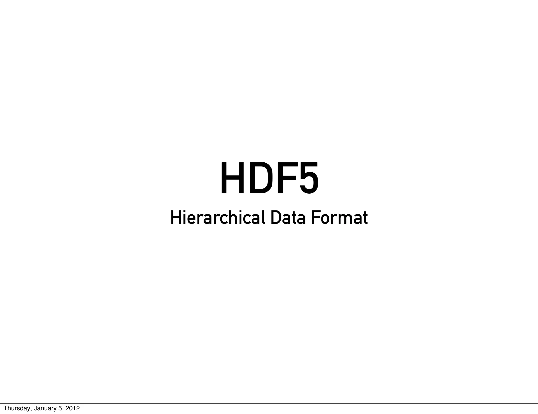 HDF5 is a file format and software library for storing and managing large amounts of numerical data. It supports hierarchical organization of data through groups, datasets that store multidimensional arrays of data, and attributes that store metadata. HDF5 files can be accessed and extended with additional data through its API, allowing for efficient input/output and access to subsets of large datasets.