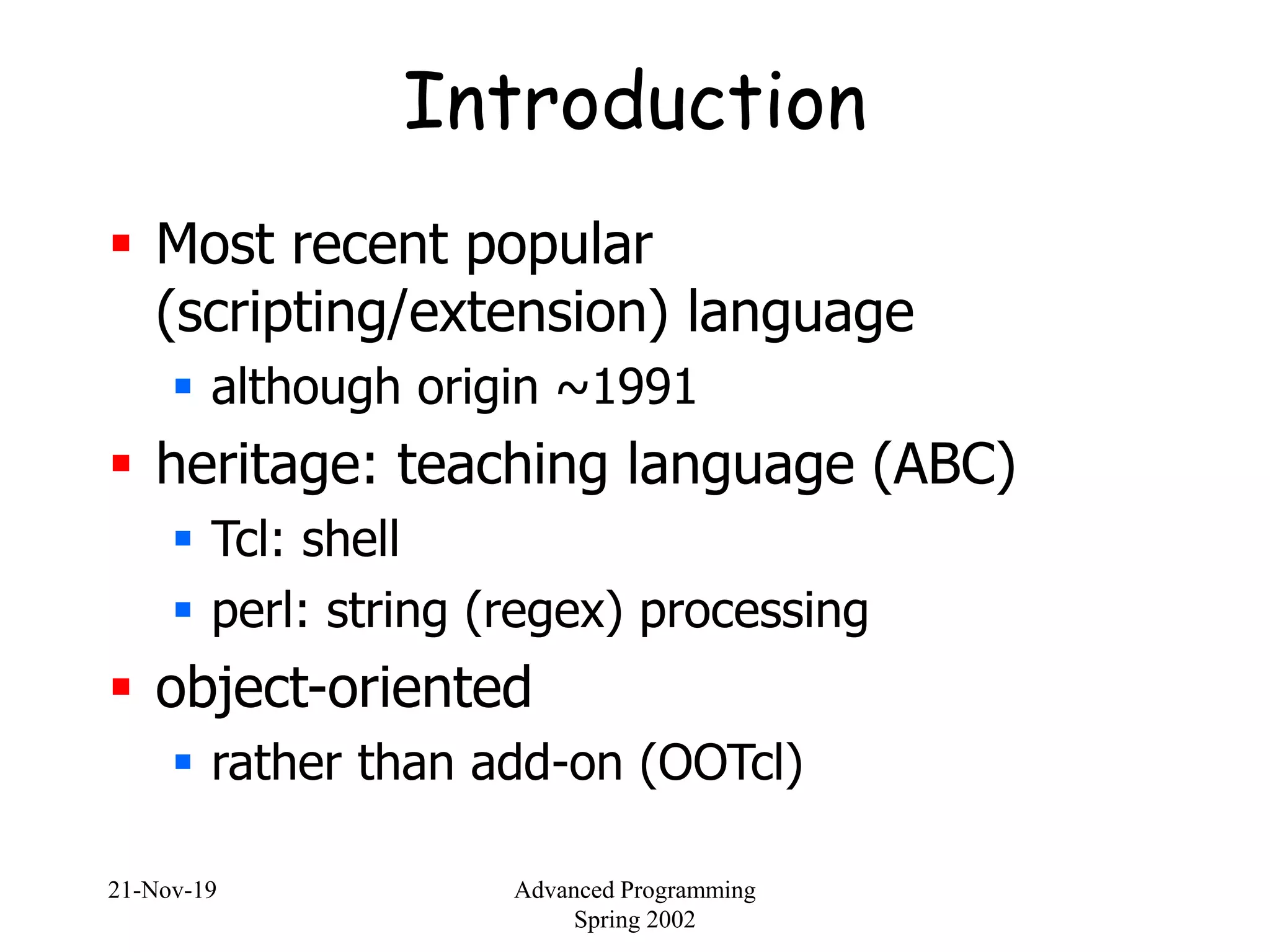 This document provides an introduction and overview of the Python programming language. It discusses Python's origins and philosophy of being readable, powerful, and allowing for rapid development. Key Python features highlighted include dynamic typing, automatic memory management, object-oriented programming, and extensive standard libraries. The document also provides examples of basic Python syntax like variables, strings, lists, functions, control flow, and dictionaries.