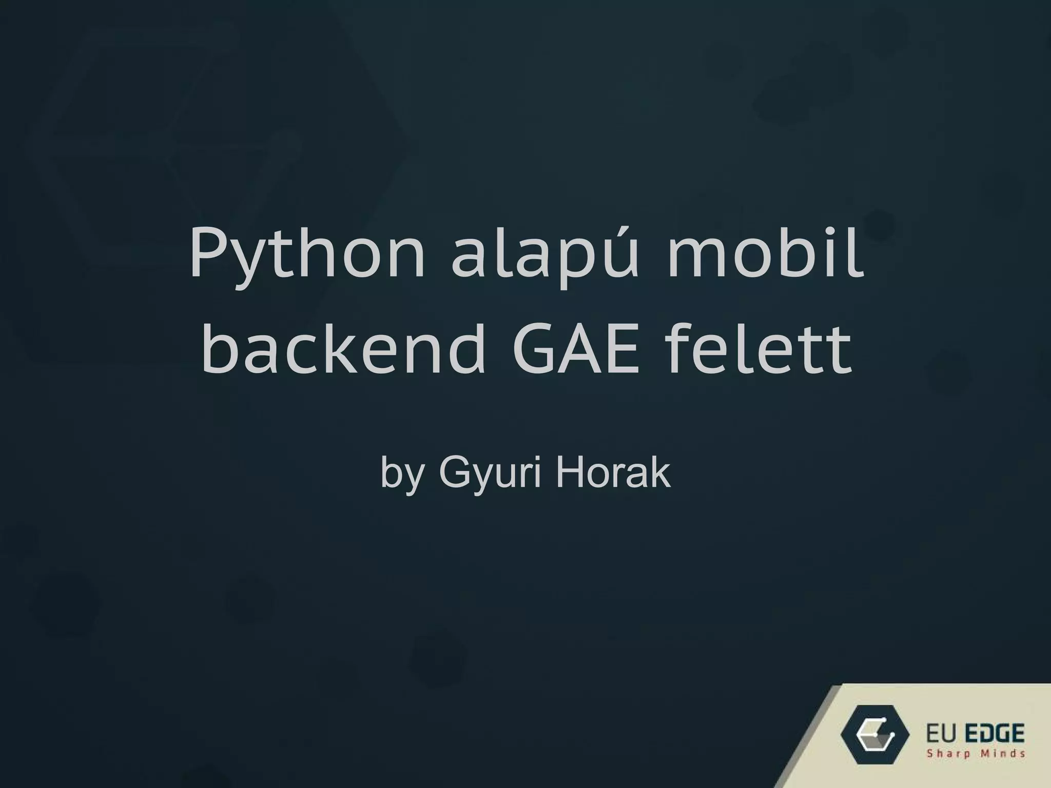 This document discusses using Python and the Google App Engine (GAE) to build mobile backends. It summarizes several key frameworks and techniques for building RESTful APIs and caching data on GAE. These include Flask for routing and views, JSON responses, caching models with Memcache, handling references and aggregations, image handling with Blobstore, and geospatial querying with GeoPt. Maintaining aggregated data and cached references may require periodic cleanup scripts.