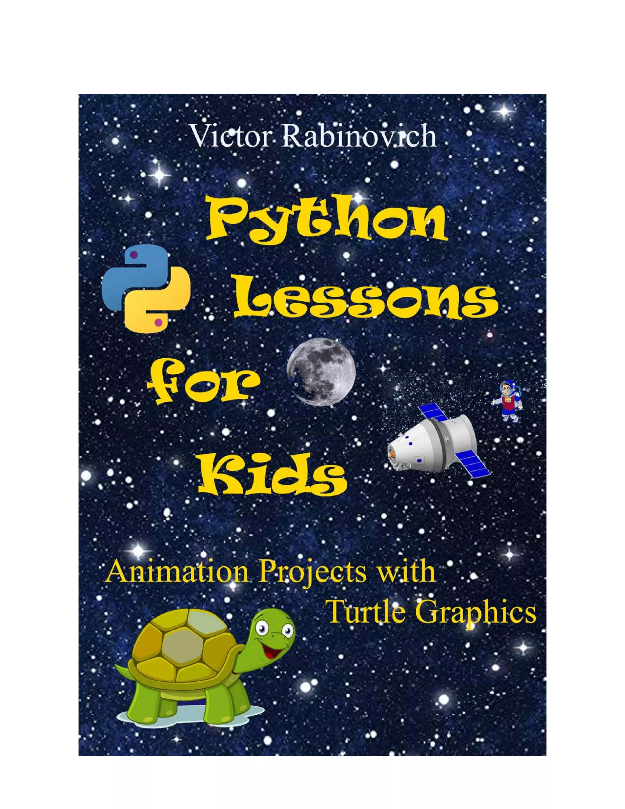 This book teaches Python programming using the turtle graphics library, aimed at children over the age of 10. It includes 19 lessons covering various programming concepts through engaging projects like animations, games, and mathematics applications. The lessons provide step-by-step instructions and examples, making it a comprehensive educational resource for young learners.