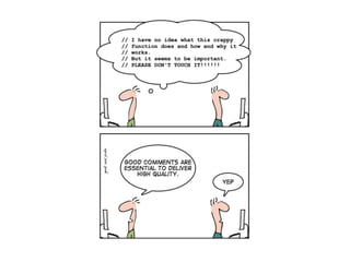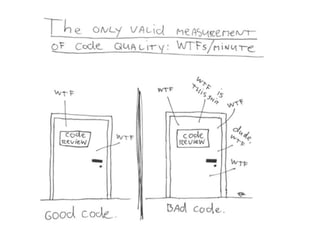 This document summarizes best practices for code quality and monitoring production systems. It discusses what constitutes good code through practices like coding standards, code reviews, testing and architecture. It also covers continuous integration, deployment and monitoring through tools like Jenkins, Docker and AWS CloudWatch. The presenter is a developer from Cloudlock who advocates for code quality and shares their experiences.